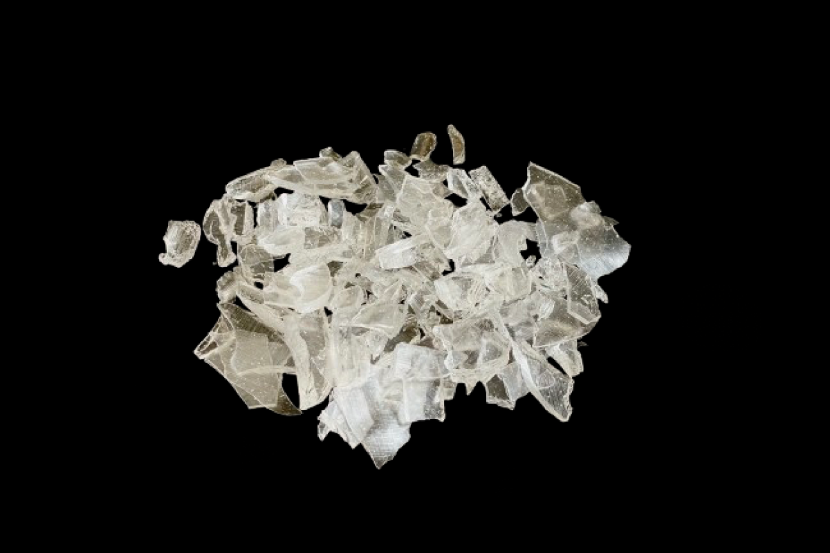 Bris de verre non coupant et non dangereux.